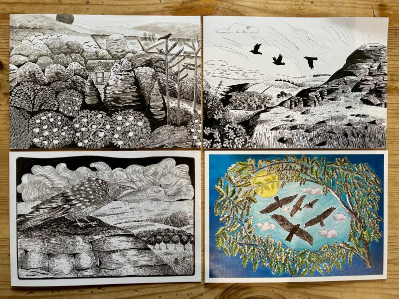 A set of four greeting cards digitally printed from my pen and ink designs.